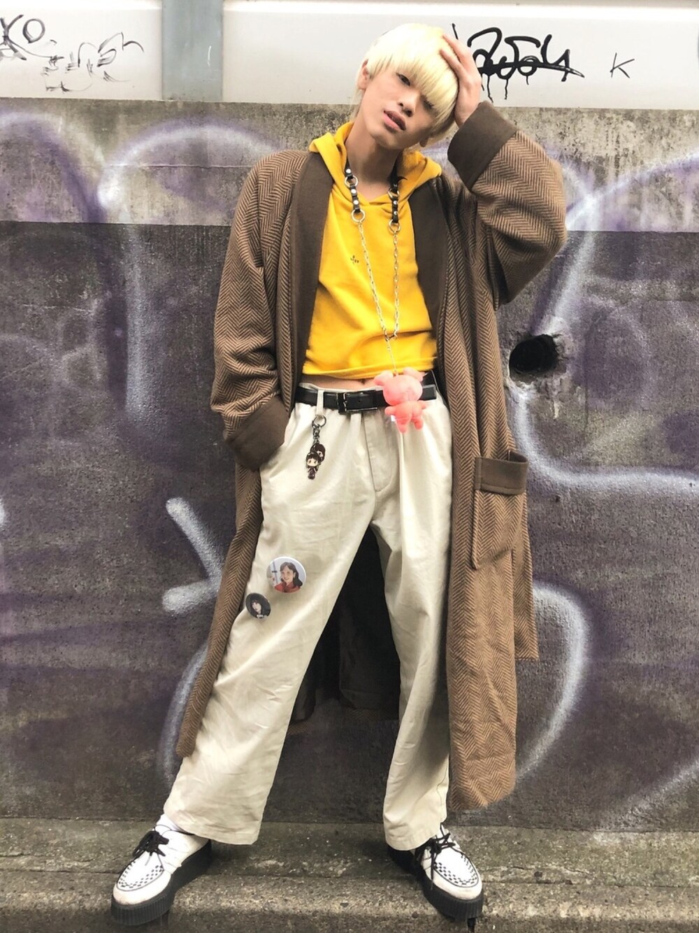 前回のハロウィンのやつセンバツ選ばれましたー! 今回の服装は古着のみの秋コーデですっ 秋らしいブラウンのガウンコート、黄色すぎないマスタードイエローのパーカー、ベージュよりの白のパンツ、めちゃめちゃ秋っぽさ出たと思う。。 パーカーはショート丈でチラ見せのヘソがエロいよ。 いつもよりシンプルだからやっぱりアクセには個性出したい!今回は大好きなTWICEのミナを使っちゃいました🍭🍭 インスタもチェックして下さい!