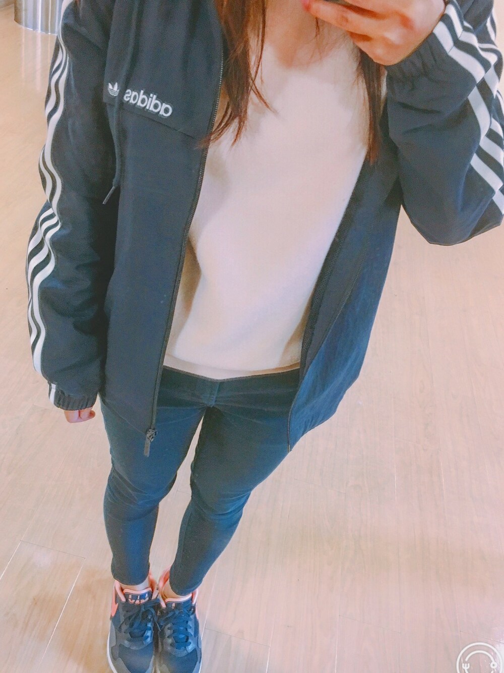 カナのナイロンジャケット「オリジナルス ウインドブレーカー [3 STRIPES WINDBREAKER]」を使ったコーディネート