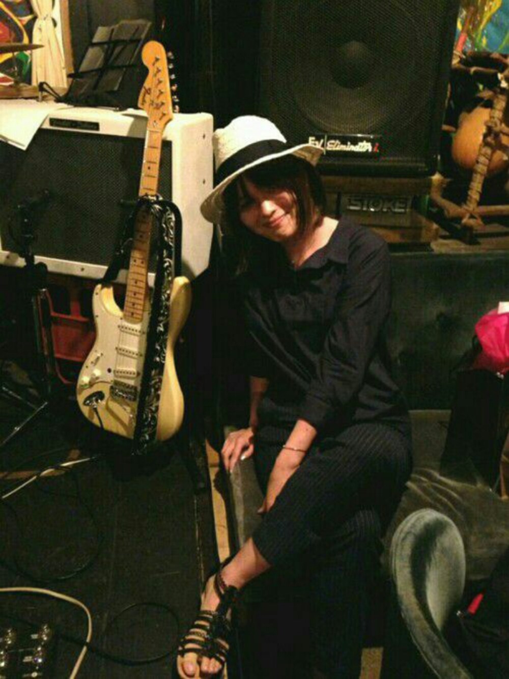 2016.8.31 今日からぼちぼち始めてみます〜 お手柔らかに、よろしくお願いします! まだ暑いのでネイビー×ホワイトハットコーデ シックを着こなすって難しい。 大好きな竹内朋康さんのギターと一緒に💚 (勝手に写ってみた笑)