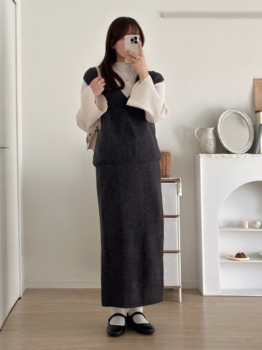 UNIQLOのスフレヤーン大好きなので Vネックベストもゲットしました!✨ もちもち柔らかなニット生地で 触り心地も、着心地も良いです☺️🫶🏻 大きめのシルエットなので サイズはジャストサイズか ワンサイズ下でも良いと思います📝◎ ゆるっとしたシルエットなので どんなトップスもレイヤードしやすいのが嬉しい💞