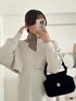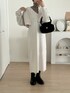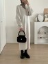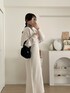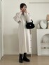 ブラック系のブーツ、ホワイト系のワンピース/ドレス、ブラウン系のニット/セーターを着用したレディースの冬コーディネートの4枚目の写真