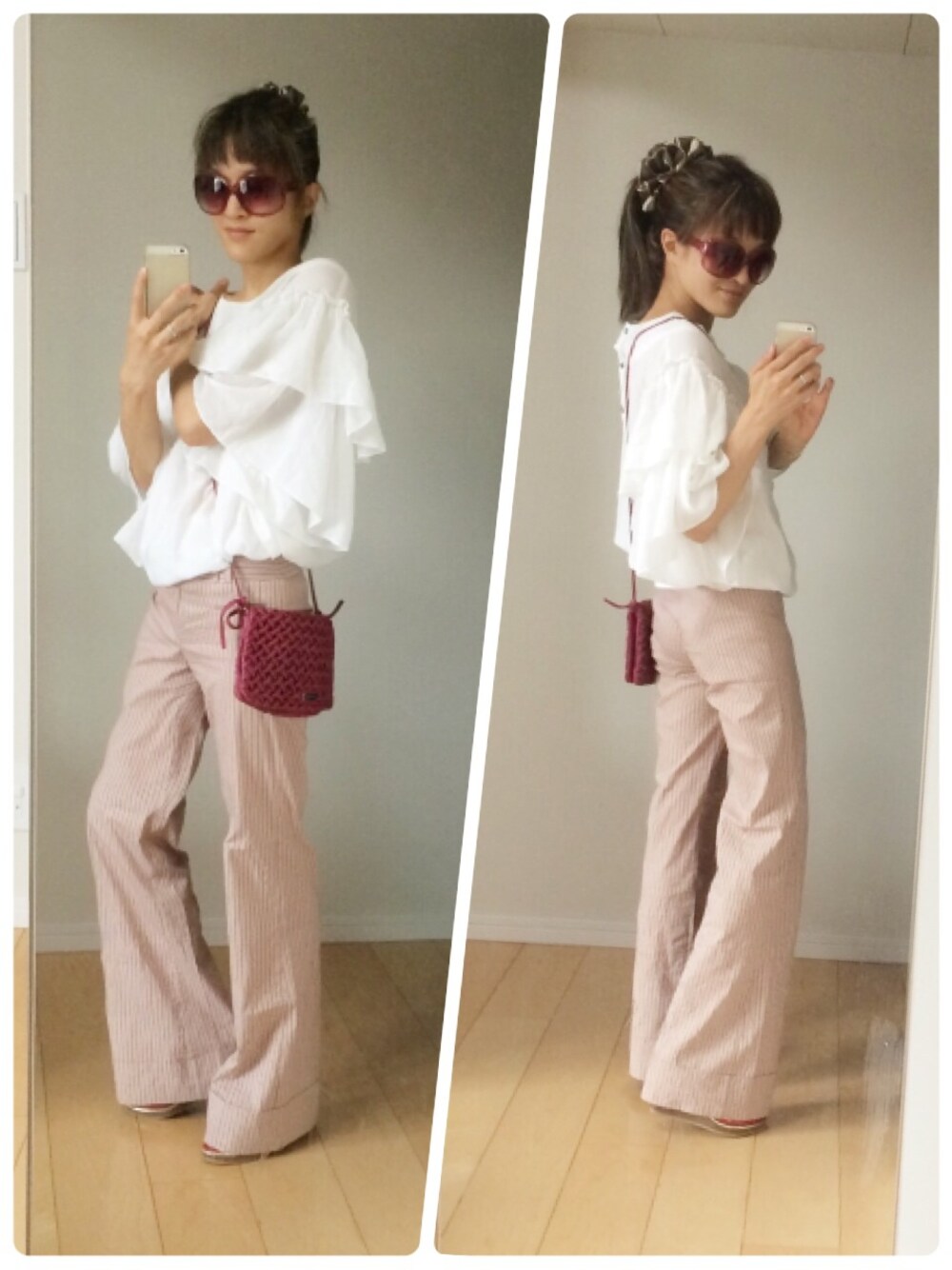 久しぶりに履くワイドパンツ。サボを合わせるのが好き。近場でお仕事につき、ポシェットで。
