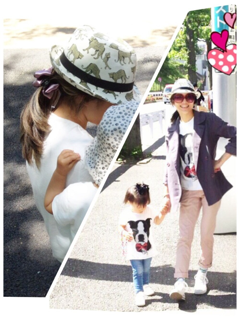 夏日に動物園。Zara kids でおやこーデ。パナマハット用に小ぶりバナナクリップ。
