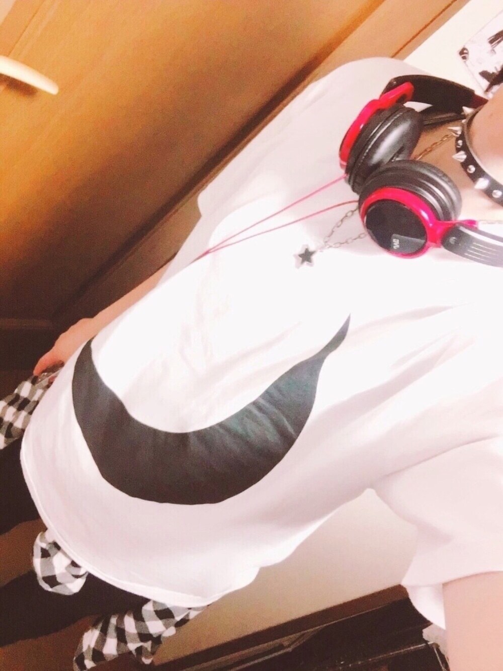 激クロであまつかみのTシャツ買いました😊 渋谷原宿で遊んだので少しハジケてトゲトゲチョーカー👍お気に入り。 ヘッドホンもお気に入り。 お気に入りコーデ。