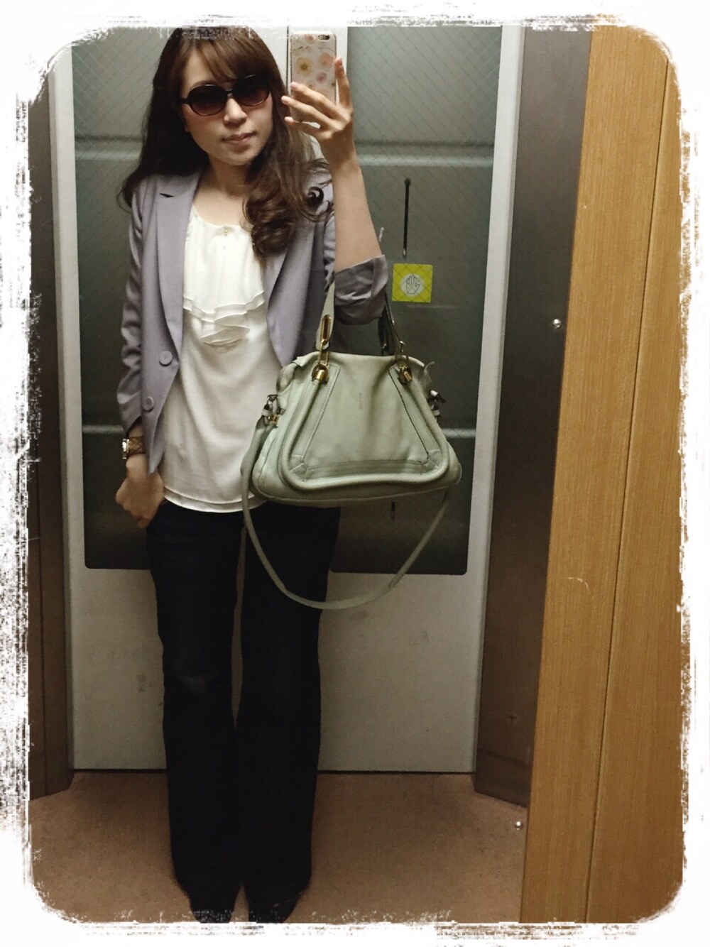 サングラスをかけると急に怪しい人に(笑) ジャケットでできる女風。…あくまでも「風」。