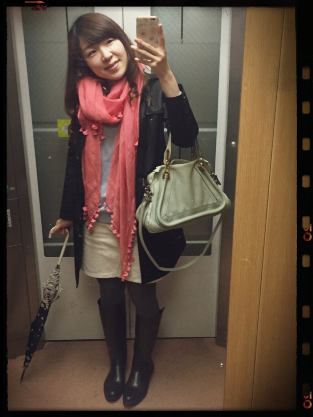 雨降りの日。 インナーや小物のカラーだけでも明るくして気分を上げる⤴︎⤴︎