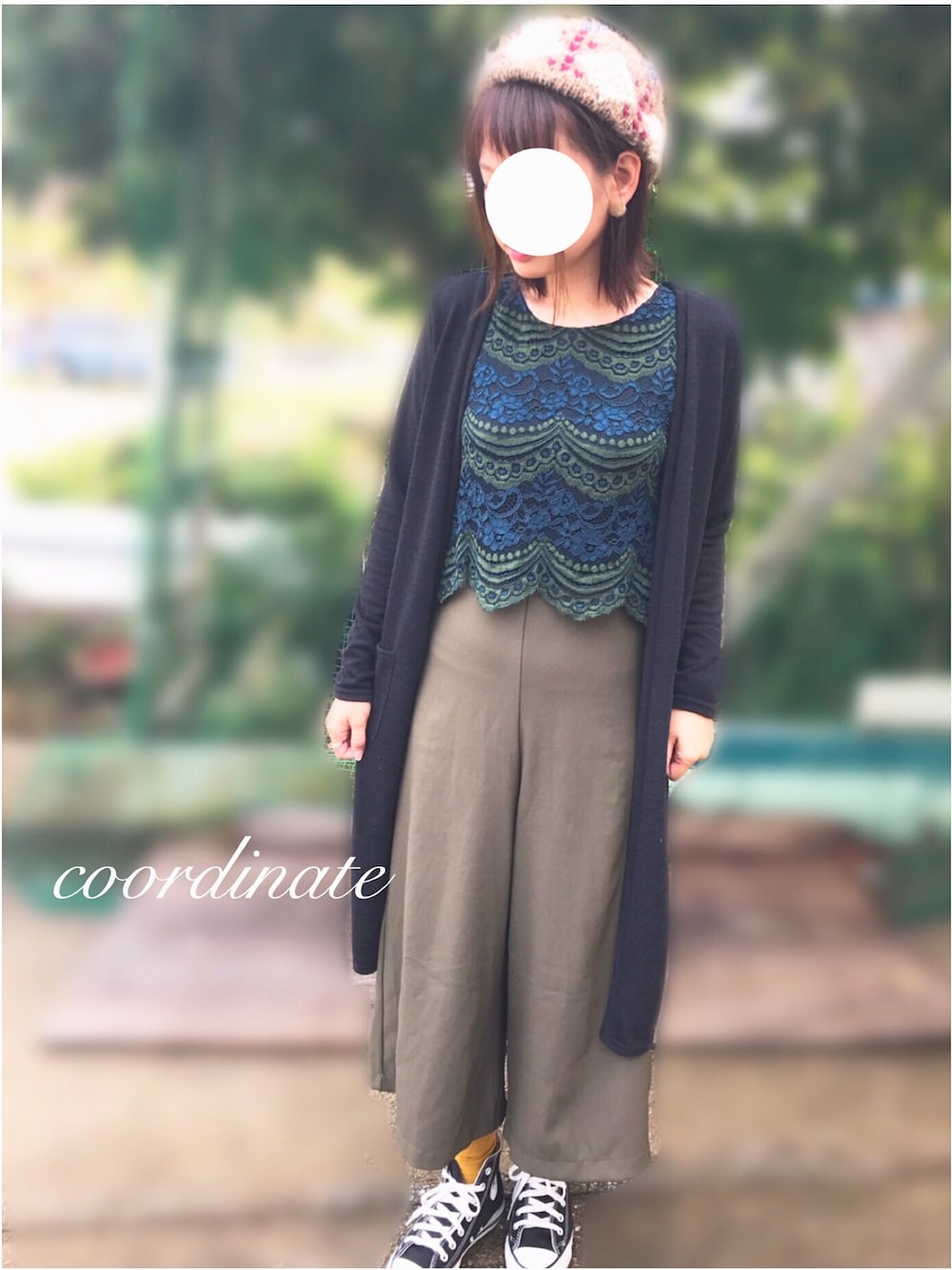 kananaのつなぎ/オールインワン「カラーレースレイヤードワイドパンツオールインワン」を使ったコーディネート