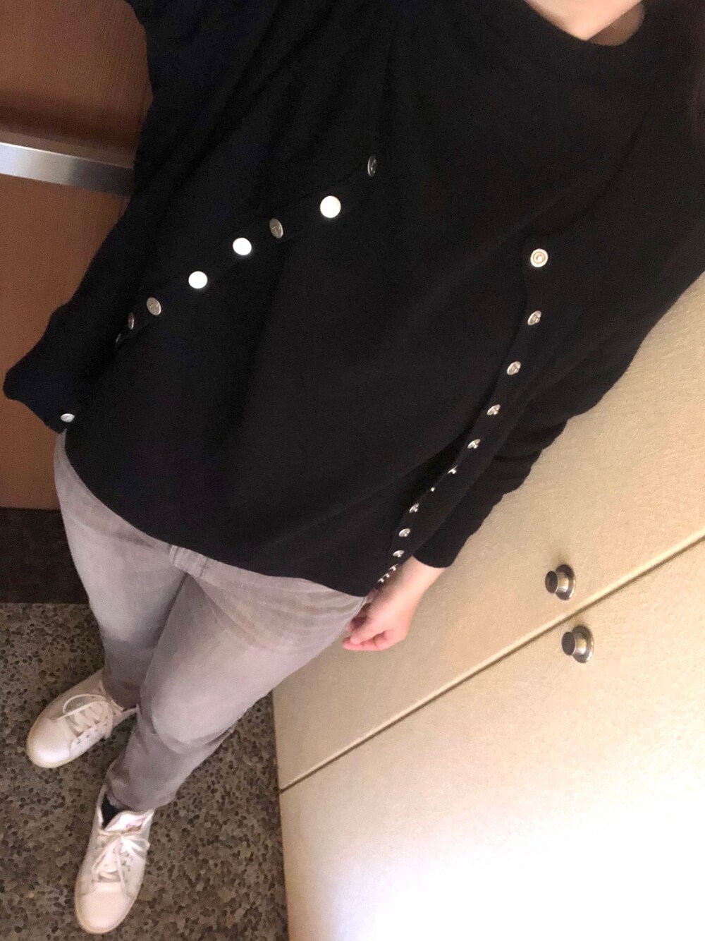 アニエスベー のスナップボタンカーディガンに、去年買って着てなかった、GUの五分袖スウェットとアンサンブル風に。
