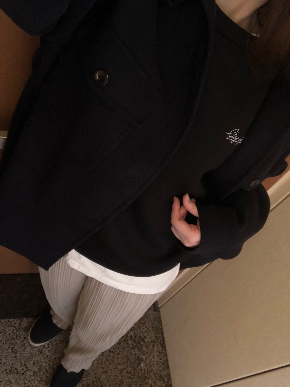 スーパー行くだけコーデ♪ 最高気温10℃前後で、☀️だったので、🚘運転してると、ポカポカ🎶 最近しまむらで買ったスウェット、ダンボールニット素材、バックにフォトプリントで、ふんわり袖💕 流行りの要素満載で、980円だった✨黒だし、さらに高見え✨ 短め丈で、レイヤードしてもいいし、アウター無しで、春に着るの楽しみ🌸 今日は、ボトムがプリパンで甘いので、スリット入りロンTに。 ラウンドヘムだと、さらに甘めになるかな? 明日明後日寒いみたいだから、ニットにコートも、まだまだ着られるかな❄️