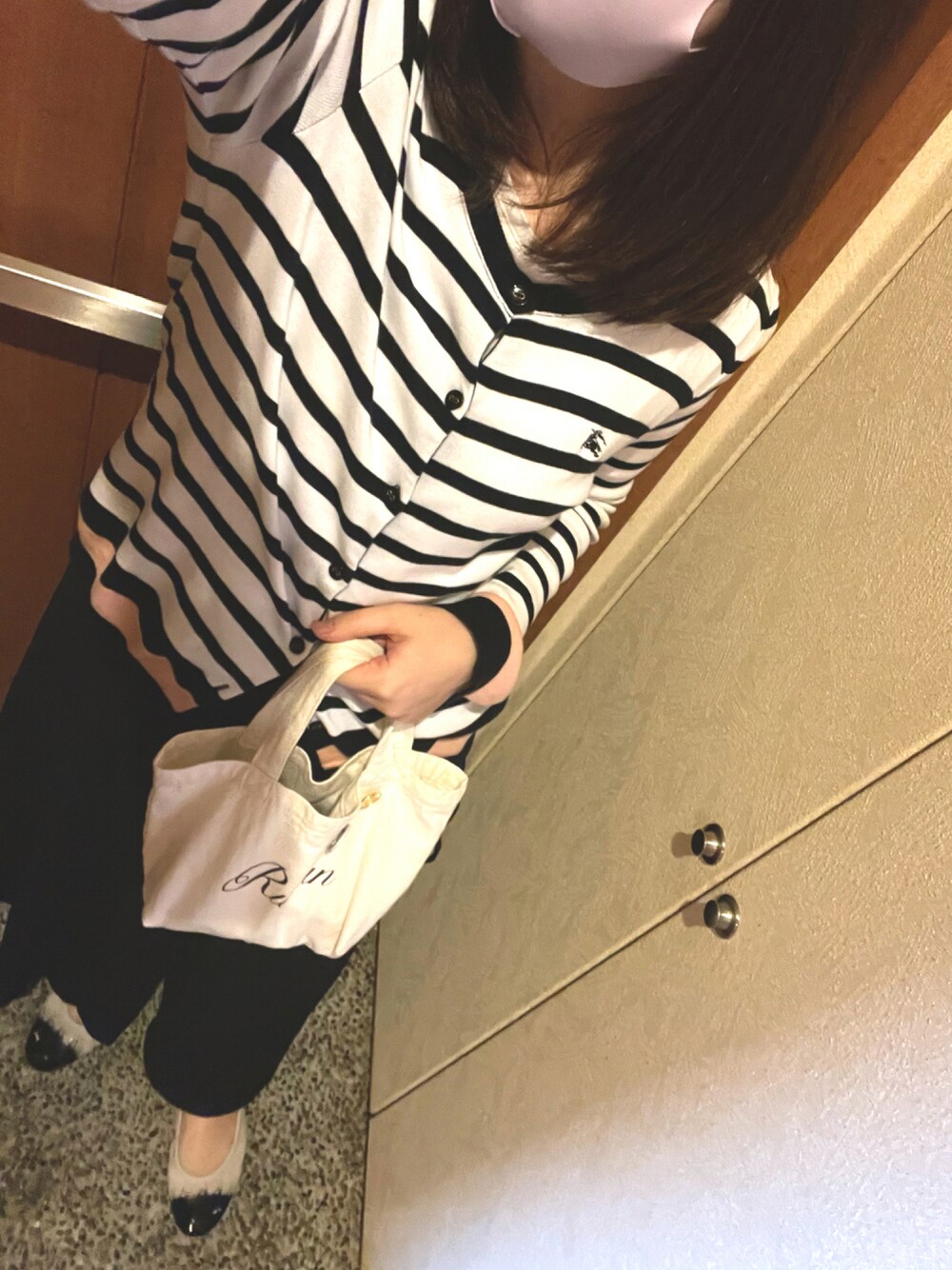 #朝の見送りコーデ 今朝は寒くて目が覚めた。夏物パジャマだと、朝起きた時寒いな。けど、日中は、30℃にせまる、夏日☀️ 風邪ひかないようにしなくちゃ。 この時期の普段着によく着てる、かなり前にZOZOUSEDで買ったBBLのボーダーカーディガンとラップパンツ。楽ちん、着心地良し👌 カーディガン、よく見たら、状態Bだったんだなぁ。もともと汚れも傷みもなかったし、よく着てるけど、全然毛玉とか毛羽たちできないし、普通に洗濯機で洗っても、縮んだり伸びたりもないし、コスパ良かったな 笑