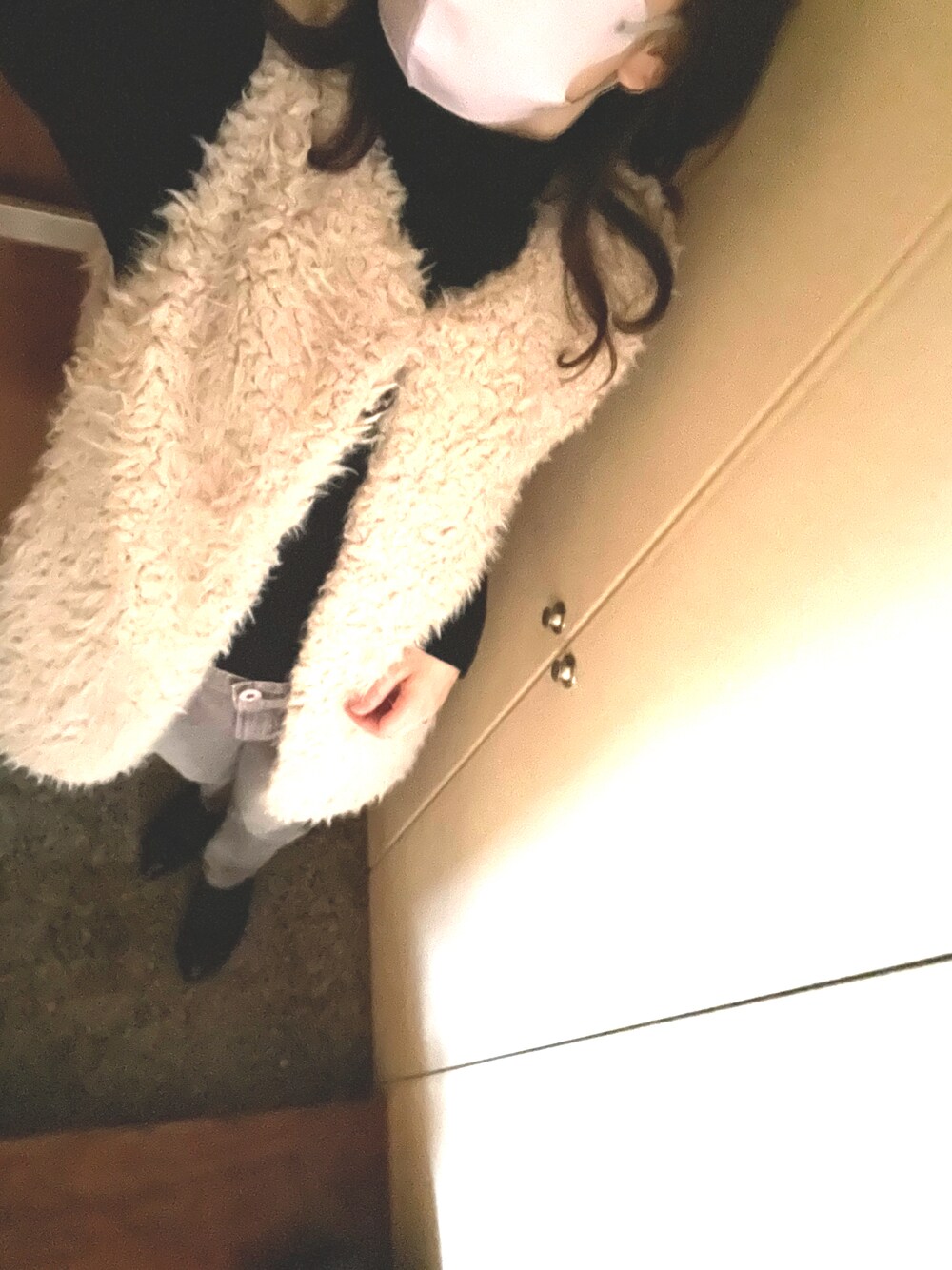 一つ前のコーデと同じ日、寒かったので、午後から着替えてスーパーへ🚘 こちらも、やりたかった、リブタートルにファーベスト。