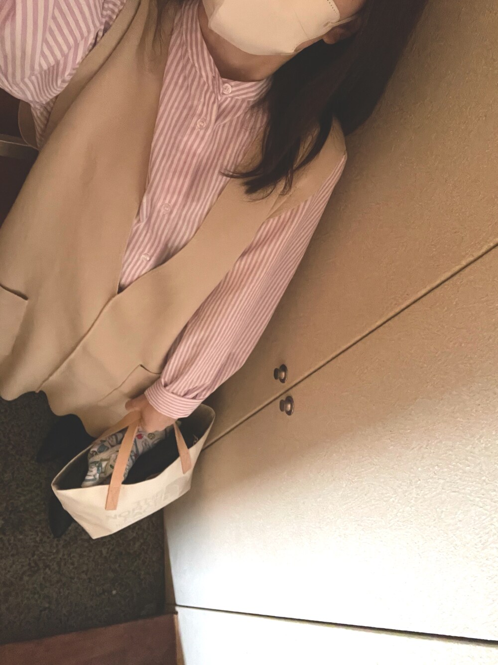 祝日🎌 ダンナは休日出勤で、息子と実家へ🚘 今日は昼間は20℃超えそうなので、シャツにベスト。シャツは、昨日買ったばかり✨ 長年愛用してる、バンヤードストームの黒スキニー。