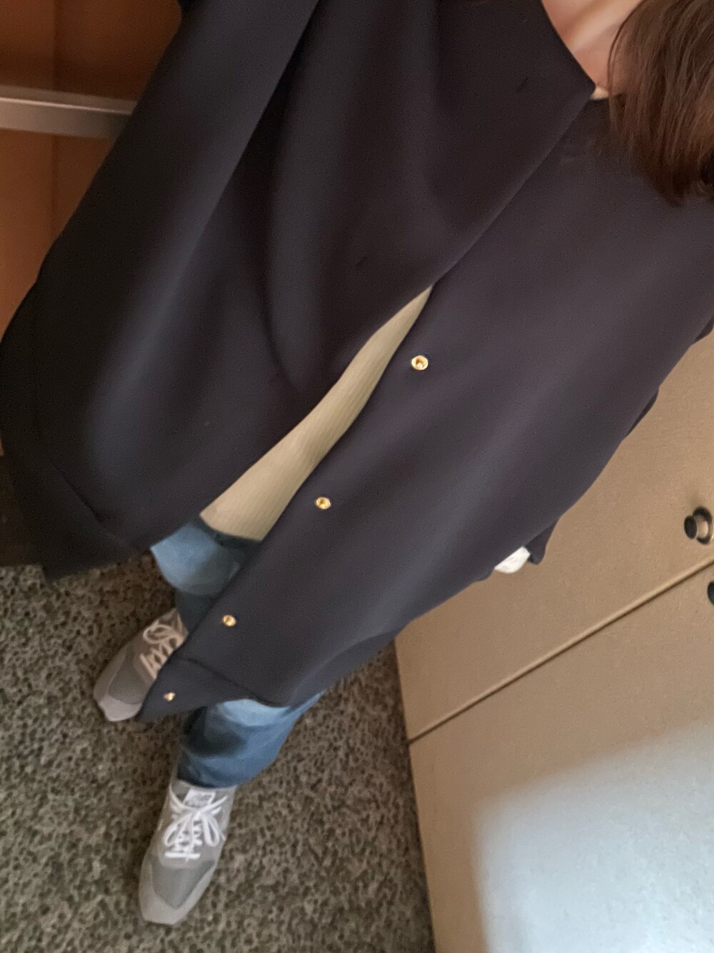 👨🏃の応援に📣 買ったばかりのジャケットに、色違いで買ったプチプラニット🧶 今日は昼間は少し暑さを感じるくらいで☀️ 薄手ニット一枚でちょうどいい⭕️
