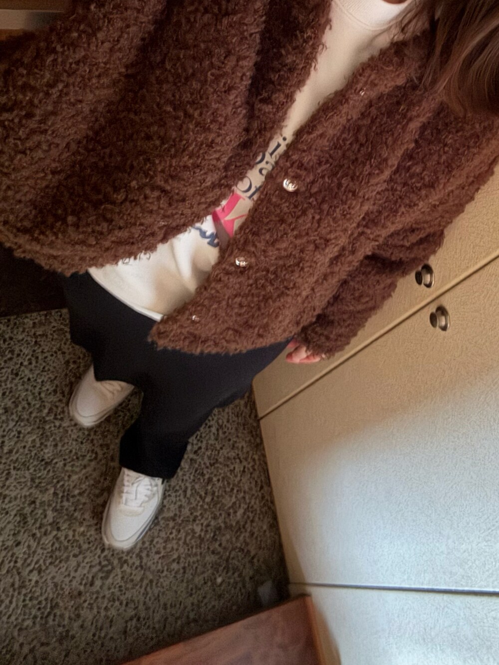 かなこのノーカラージャケット「ボアジャケット season reason 2024.12.」を使ったコーディネート