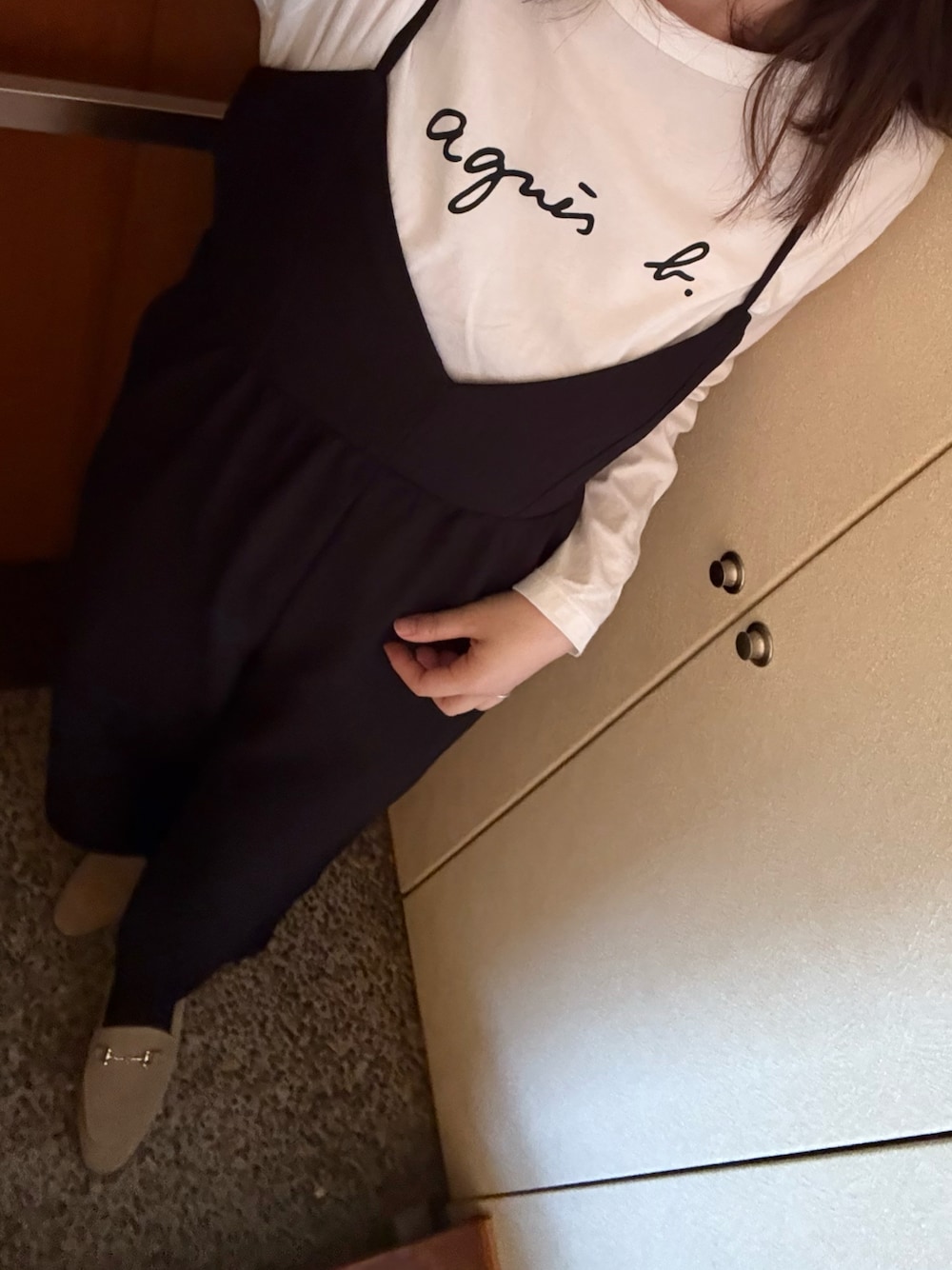 午後から息子の学校で懇談なので、珍しく朝イチスーパーへ。寒暖差がすごくて、朝晩肌寒い💦ロンT一枚だと、ちょっと冷えたわ🤏 バブーシュ、ユニクロのラメソックス合わせたら、ソックスのゴムがゆるいのか、ずれまくって💦 学校行く時は、ショート丈のストッキングにチェンジして、服もお着替え。 これの一つ前、ネイビーのサーマルにホワイトのパンツで。 このバブーシュ履く時は、タイツかストッキングのが良さそう⭕️あとは、フットカバーかな。