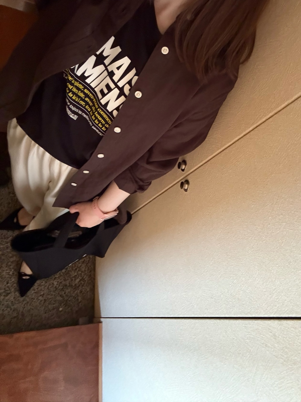 平日休みが揃ったので、イオンへ🚙今日発売のスタバのマンゴー飲みに行って、👨とランチ🍽️ slobeで最近買った服で🎵 モールの中、エアコン効きすぎのとこもあるから、リネンシャツの羽織りがあるといい感じ⭕️ パンツも、ツヤツヤ感がいい感じ✨ブラックも欲しいな🩷