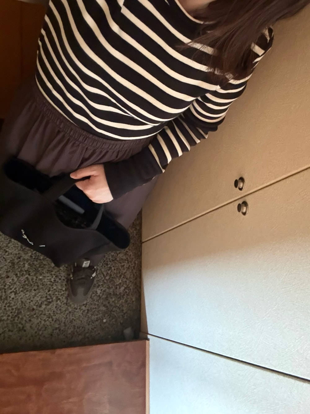 きのコ、婦人科検診受けに🏥 なのでスカート⭕️ 脱ぎ履きしやすい👟👌 数年前のIENA別注traditional whetherwear、生地がしっかりしてて、ニットだとまだ暑い秋にぴったり🍂 バックと袖のボタンがいい感じで、色違いも、買っておけば良かったなと思うくらい。 またIENA別注で発売されないかな?