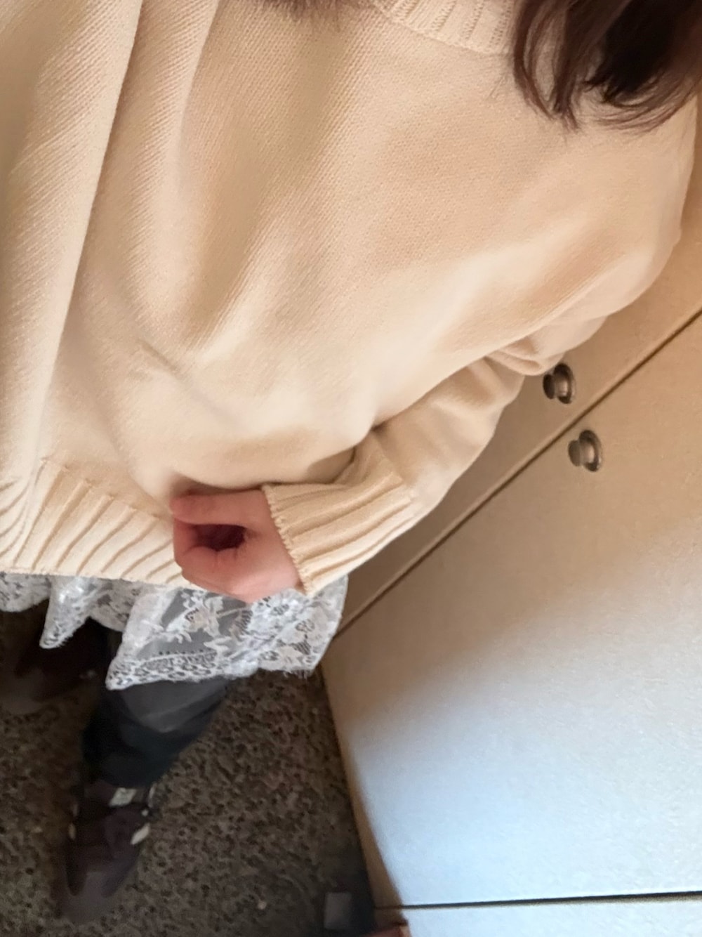 きのコ、平日休みの👨と近所の美味しい🍜食べに行って、スーパー買い出し🛒 寒の戻りで今週は寒くて😨 しまおうかなと思ってた裏起毛👖で。 パパっと支度して出たいけど、ちょっとおしゃれもしたいので、シンプルニットにサッとレーススカート履いて、今年っぽいコーデに✨ アウターは、冬っぽすぎなの着たくなくて、数年前のフリースジャケット✨モコモコしてないのが⭕️
