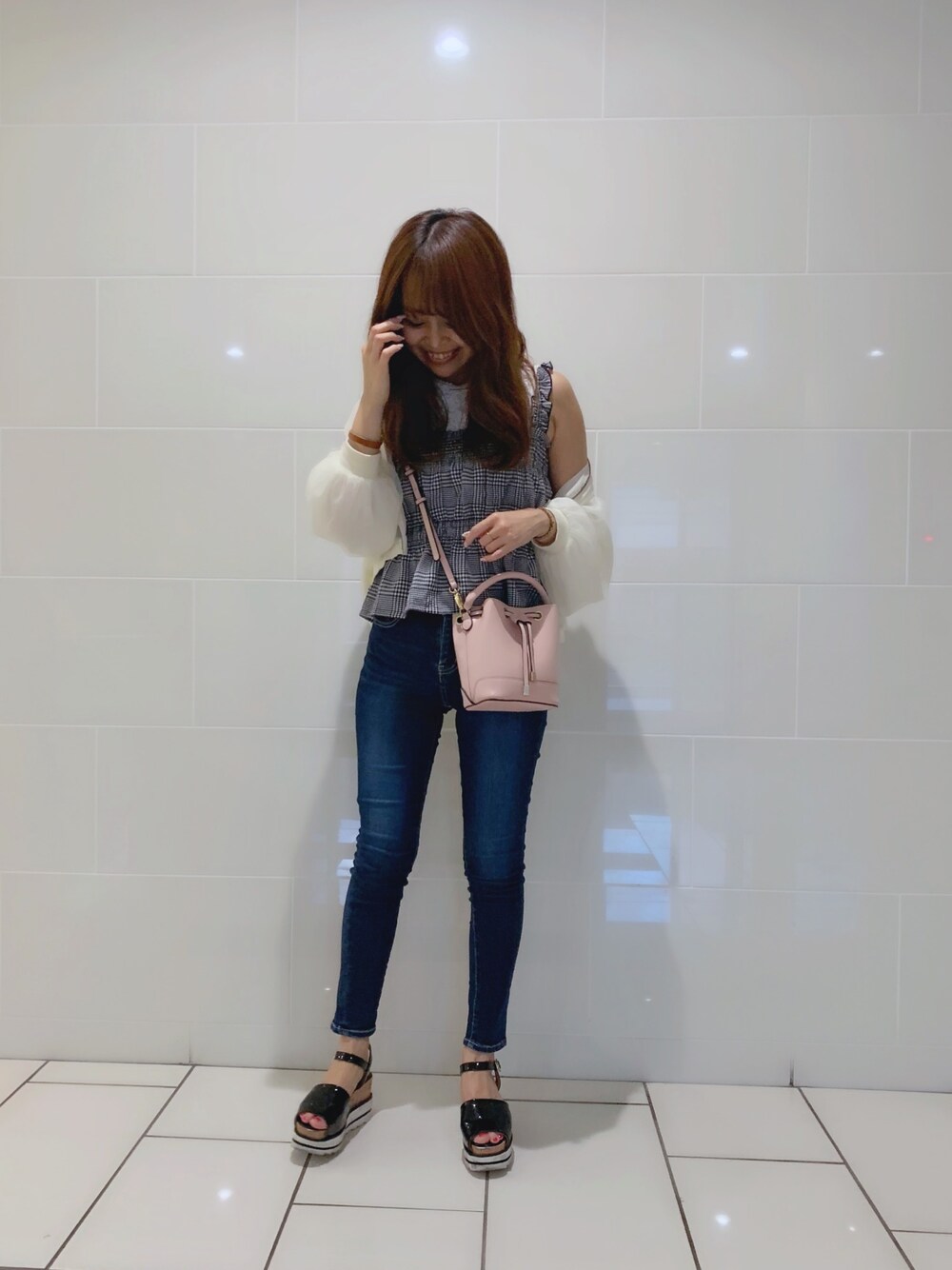 カジュアルガーリーStyle( ^ω^ ) 久々のスキニー👖 厚底サンダルと合わせたら 脚長効果抜群すぎ🥰 そろそろ秋服着たいけど、 まだまだ暑いねー😇