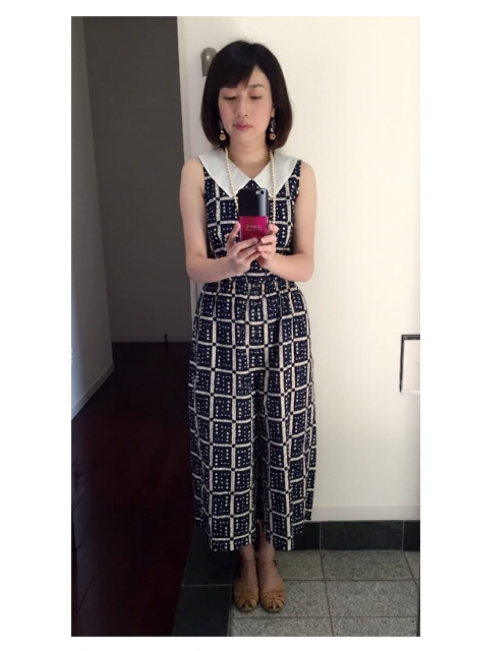 かなみのつなぎ/オールインワン「チェックドットプリント フラットカラーオールインワン」を使ったコーディネート
