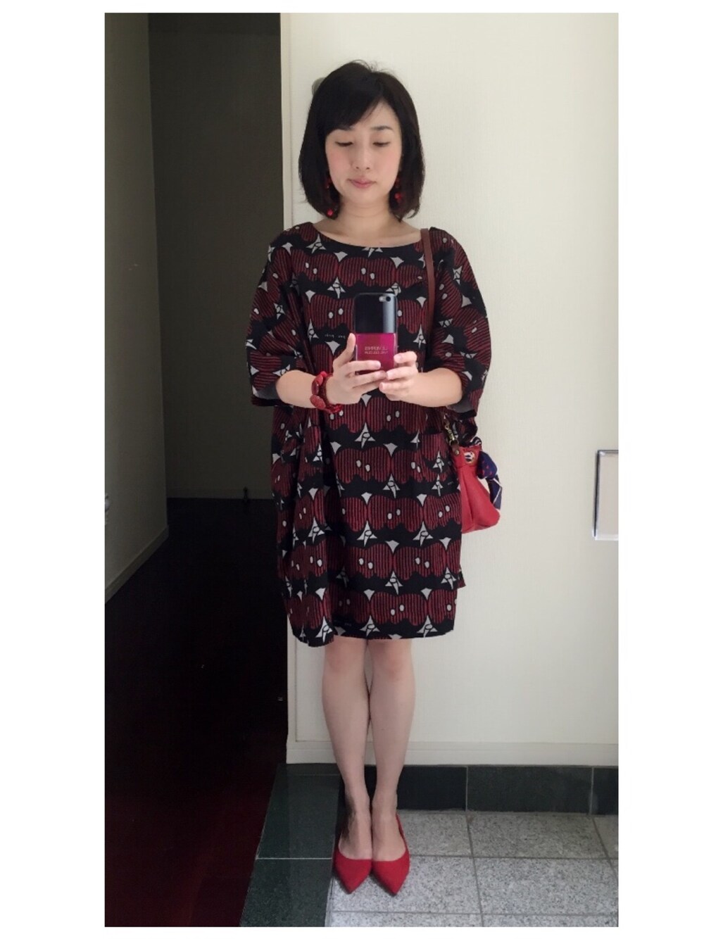 リンゴ柄のワンピース。