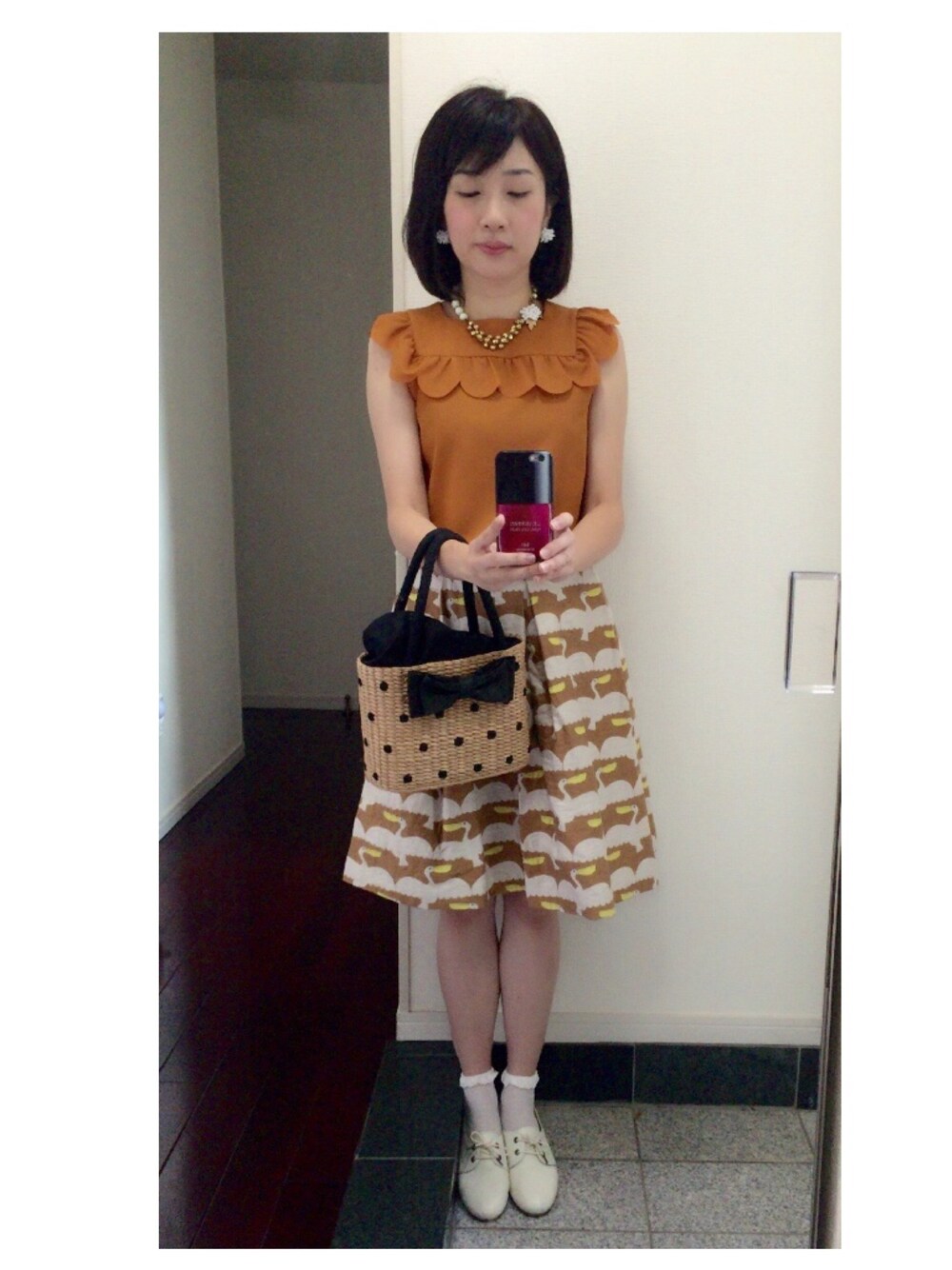 ペリカンスカートでキャラメル色のコーディネート。