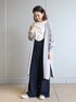 サイドスリットがポイントのロングカーディガン! シンプルなのでどんなお洋服にも合わせやすいアイテムです。 とろみ素材のキャミサロペットとコーディネート。 長さ調節も可能です!