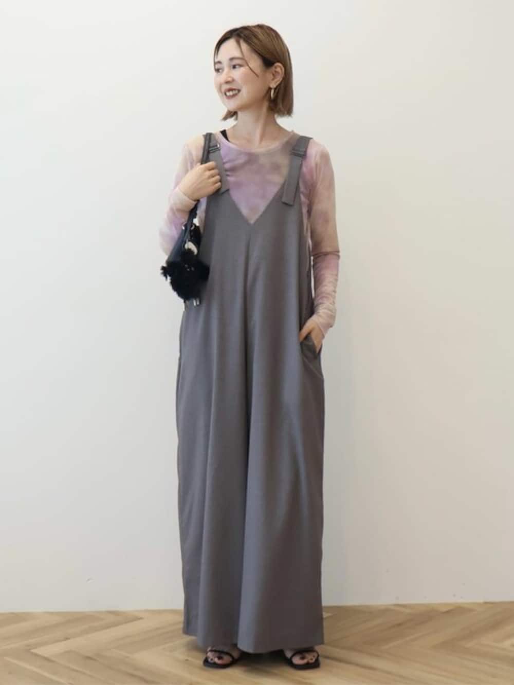◆トップス 普段着用サイズ:Mサイズ 今回着用サイズ:Mサイズ 【素材感】 収縮性のあるシアー素材。 【着用感】 ニュアンス柄でトレンド感のあるトップス。 主役としてインナー合わせで着たり、サロペットなどのインナーとして着たりと様々な合わせが可能です◎ ◆オールインワン 普段着用サイズ:Mサイズ 今回着用サイズ:Mサイズ 【素材感】 イージーケア素材でご自宅でのお手入れ簡単! 【着用感】 深めのVネックでスッキリと見えるオールインワン。 インナー次第でロングシーズンご利用可能! 様々なコーディネートがお楽しみ頂けます◎ 体のラインを拾わないのでさりげなく体型カバーも叶います。