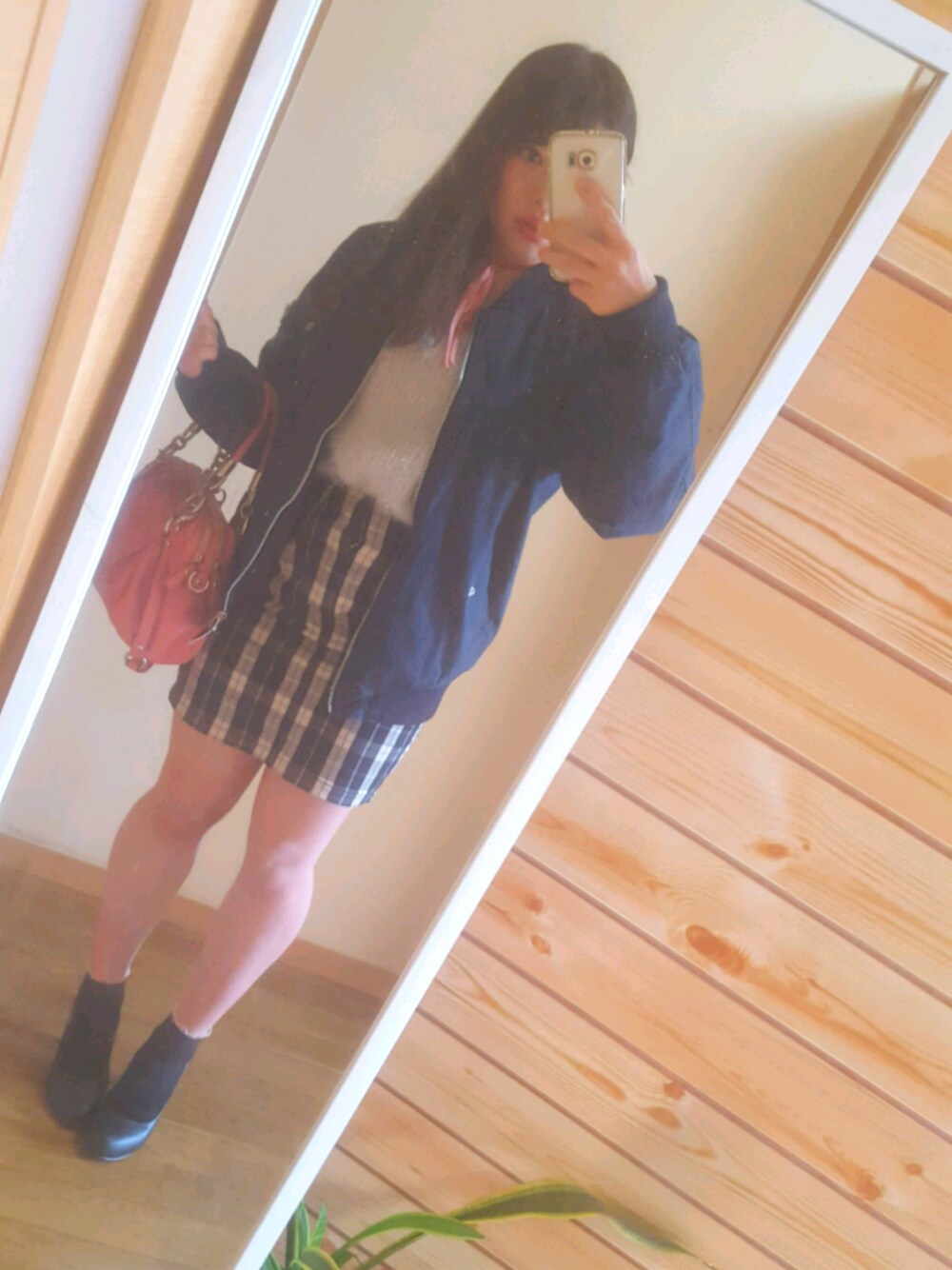 . . モノクロピンクコーデ💗 モノクロには赤かピンクを差し色で入れるのが好きです。 韓国で購入したMA-1はあったかいしビックサイズで可愛く着れるのでお気に入り✌ . .