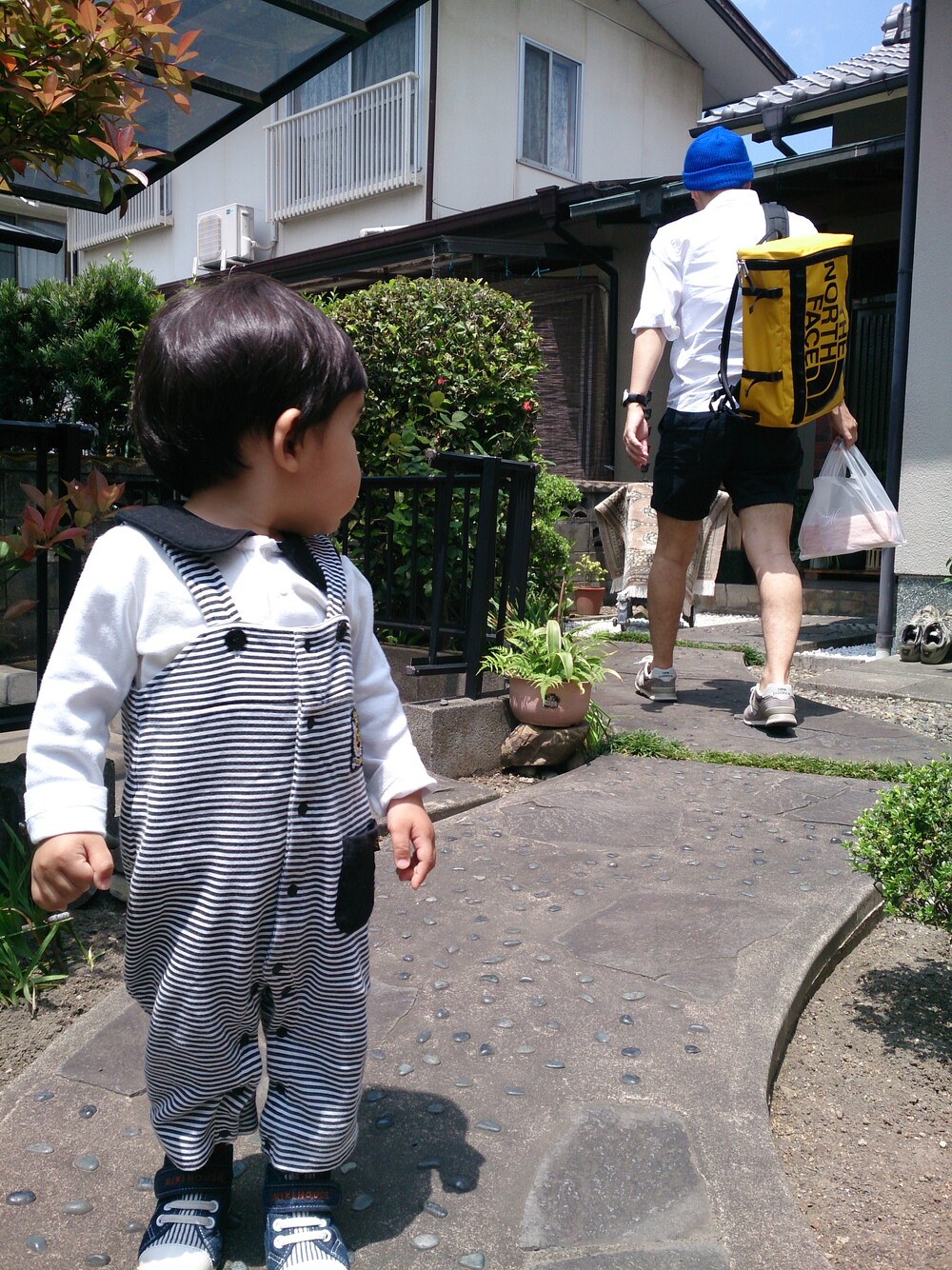 パパを見つめるぴーくん☆ サロペット:西松屋 トップス:西松屋 靴:ミキハウス