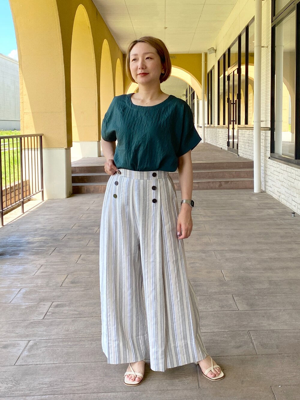 pal_kana_596のTシャツ/カットソー「シアーストライプショルダータックブラウス」を使ったコーディネート