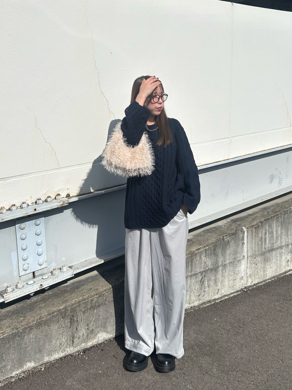 ネイビー×グレーで大人カジュアルコーデ。 オーバーサイズなニットにワイドパンツでゆるっとしたシルエットに。 ig:kn_246_ra