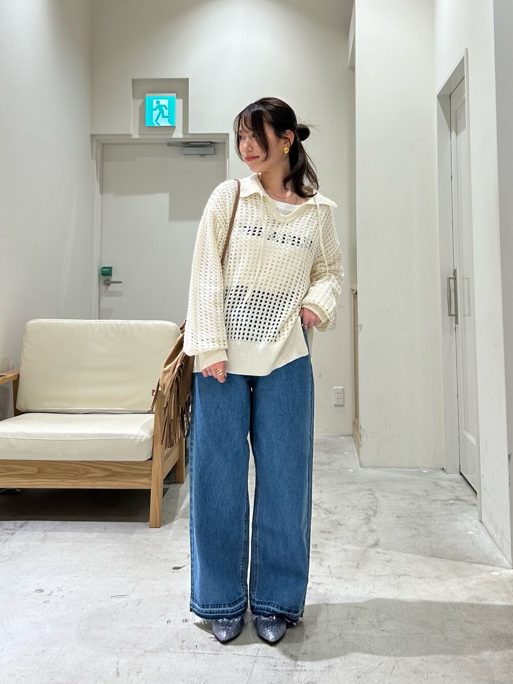 着回し力抜群のメッシュニット。 ロゴTeeをレイヤードして、カジュアルに着てみました。