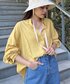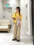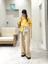 イエローのシャツで春の大人カジュアルコーデに。 ブラウンのボーダーをアクセントにしてみました。