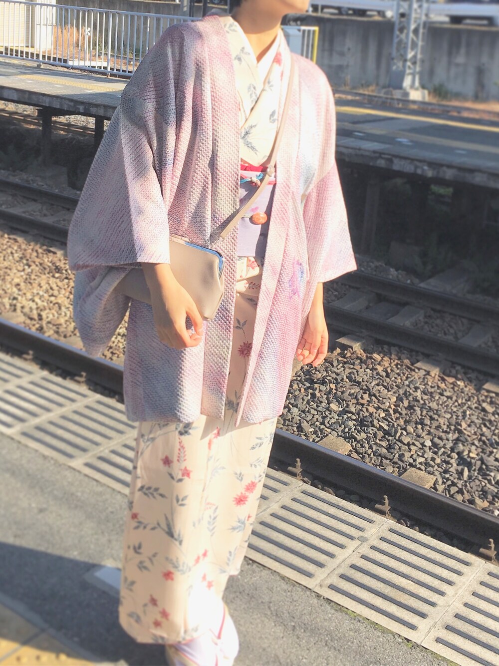 洋服ではチョイスしない淡いピンクの花柄も着物なら着れる魔法。