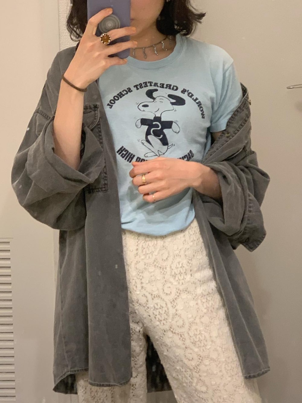オレンジ系のリングを着用したレディースの春コーディネートの1枚目の写真