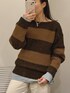 ブラウン系のニット/セーター、ホワイト系のパンツを着用したレディースの春コーディネートの3枚目の写真