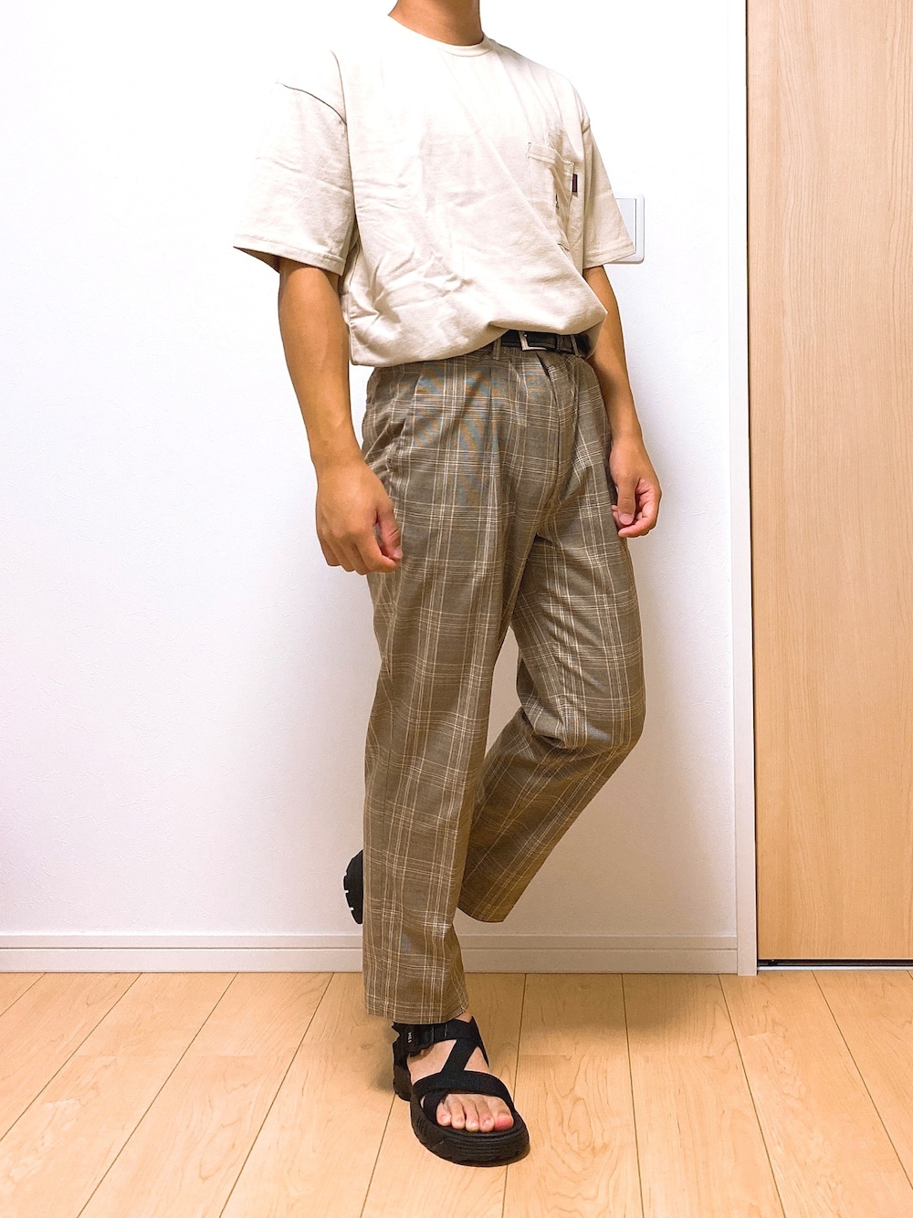 ご覧頂きありがとうございます😊 今日もタックインコーデです! 今回はベージュで統一してベルトや靴の黒で引き締めました。 最近タックインに慣れてきて タックインが楽しいです🤗 では!