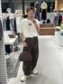 夏にしたいブラウンコーデ🐈🤎 今回は、Tシャツ×レオパードパンツで夏にしたいブラウンコーデになります❗️ ポイントは、Tシャツのロゴの色をボトム・バッグ・シューズでいい感じに拾ってまとまりを出したこと☘️ ・ ・ 【トップス】 胸にロゴの入ったTシャツになります! これのメリットは上から羽織りを重ねてもインナーとして大活躍するところ✌️ ブラウンの色味なので基本のどんな色もマイルドに変えてくれるからオススメです🍒ྀི ・ ・ 【ボトムス】 サイズはMサイズで履いてます‼️ ウエストに深いタックが入っているから、野暮ったくなりすぎずスッキリさせながら履けるので男女性問わずお召あただけます😍 柄も派手すぎないので挑戦してみたい方ぜひ🔥 ・ ・ インスタも是非ご覧ください😊 ↓