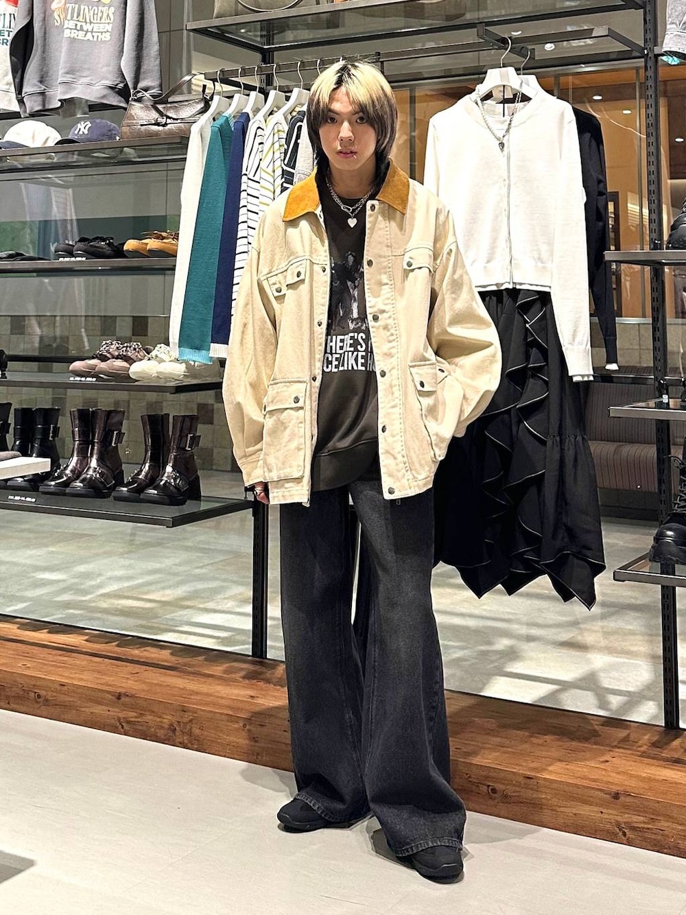 春にしたいメンズワークコーデ⚒️ 今回は、春にしたいメンズのワークスタイル‼️ ポイントは、アウター以外をシックなダークトーンでまとめて大人っぽくコーデを組んだこと🖤 ・ ・ 【アウター】 ワークスタイルが組みやすいジャケット🧥 襟がレザー素材になっているので、異素材によるオシャレ感がポイントです💃✨️ 生地感は、柔らかくて春にピッタリなアウターです🌸 ・ ・ 【トップス】 オズの魔法使いのスウェットです! ビンテージライクなスウェットなので、古着っぽいスタイリングがお好きな方にオススメ🍒ྀི 春先なら、ワークテイストのアウターと合わせてあげるとトレンドコーデになります🌍