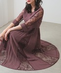 ”プリーツ×レース ウエストタック ワンピースドレス” Mサイズ着用💁🏻♀️ プリーツとレースの切り替わりのあるスカートデザインがエレガント! 大人っぽいパープルは肌をきれいに見せてくれるのでおすすめです♩