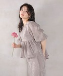 kana_staff(KanaEC事業部)のドレス「ジャガード バルーン スリーブ ブラウス Iラインスカート2点セット パーティードレス オケージョンドレス 結婚式 お呼ばれ」を使ったコーディネート