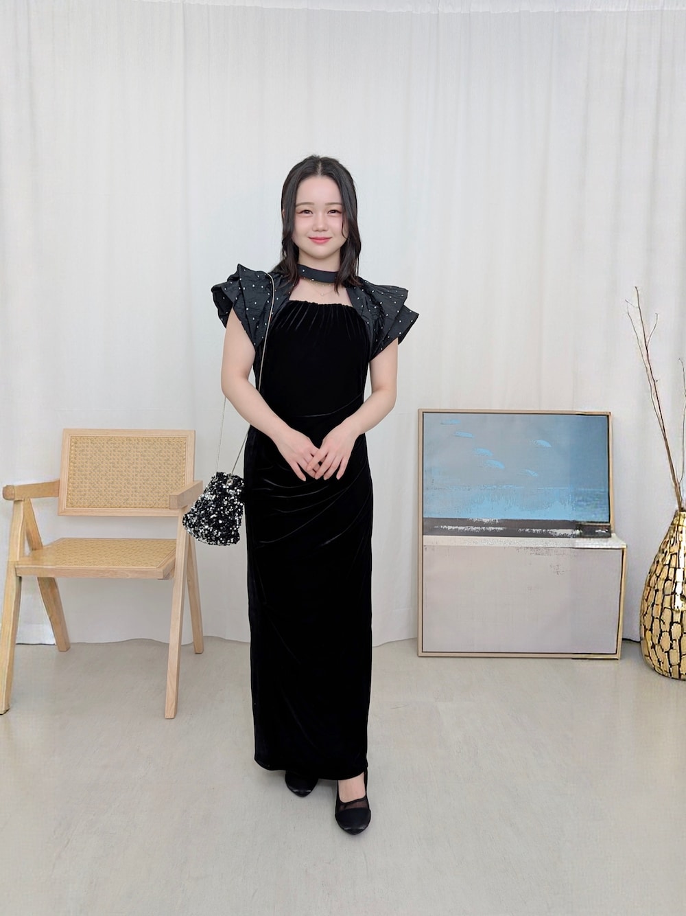 ベロアの気品とフレアスリーブの甘さが 視線を引き付ける大人の余裕を❇︎