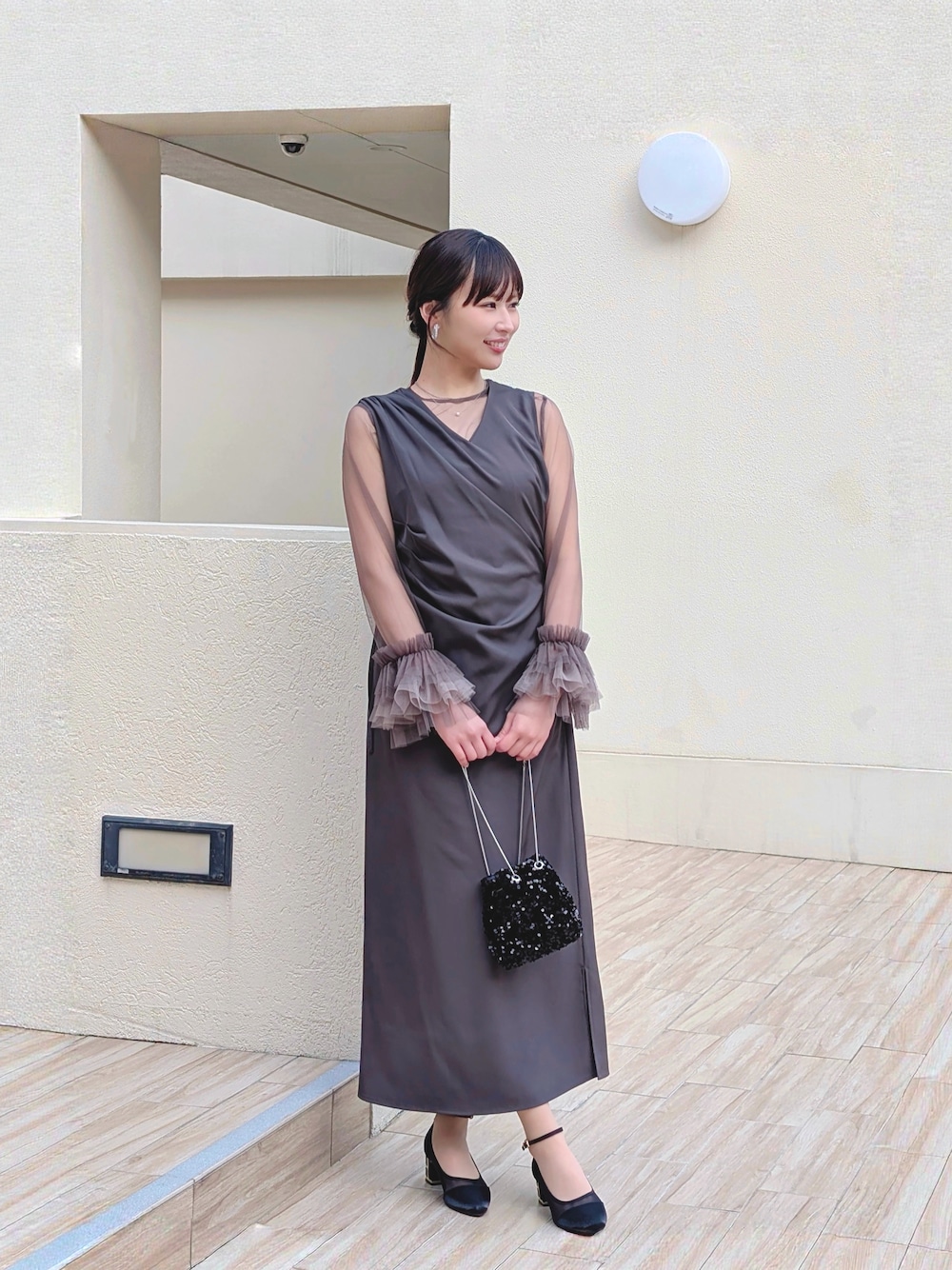kana_staff(KanaEC事業部)のドレス「チュール袖フリル ドレープワンピースドレス 2点セット パーティー 結婚式 お呼ばれ オケージョン」を使ったコーディネート