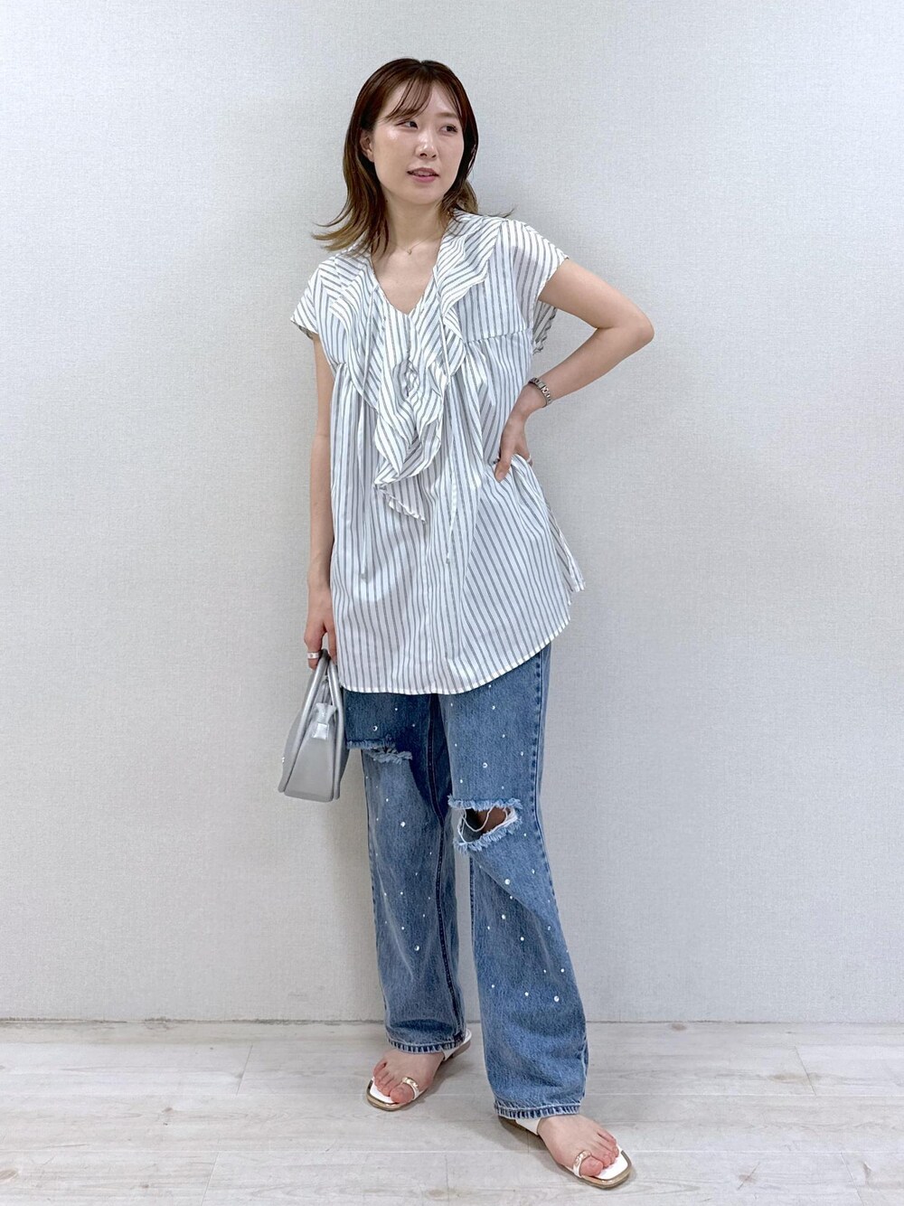 爽やかなフリルブラウスにデニムを合わせて 涼しげなコーデにしてみました☺︎ こちらのコーデが気に入っていただけましたら、 フォローとお気に入り登録していただけると嬉しいです☺︎ Instagramも更新中です♡ @kana__vis