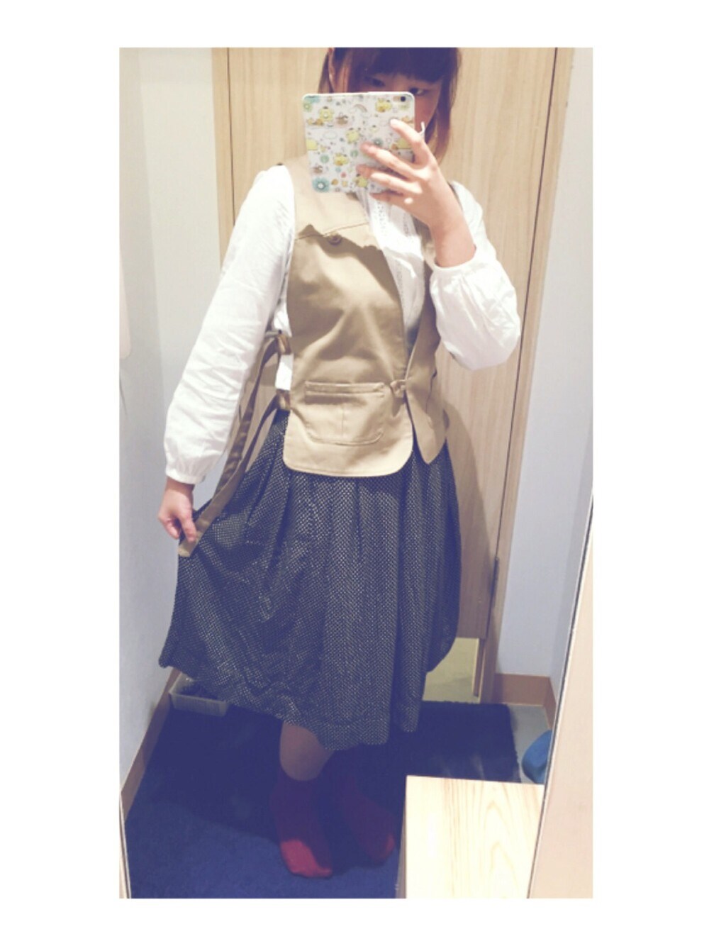 大好きな秋を満喫するべく 昼間はちょっと暑いですが、 秋仕様のコーデにしました。 大好きなUNIQLOとINESの コラボシリーズのスカートは 小さめのドット柄が可愛い♡ 素材もレーヨンでサラサラしてて 着心地も抜群です(*´艸`*) ジャンブルストアで今年購入した 古着のベストはライフジャケット のようなデザインになっています。 後ろのほうが長めの丈になっていて サイドはベルトが2本だけの 変わった形に一目惚れしました♡ ブラウスは数年前に無印で購入以来 ずっと愛用している物です。 靴下はしまむらで昨年購入。 差し色としてボルドーの 靴下を履いてみました。 スカート*990円+tax(UNIQLO) 古着ベスト*約2000円(ジャンブルストア) ブラウス*価格不明(無印良品) 靴下*約300円(しまむら)