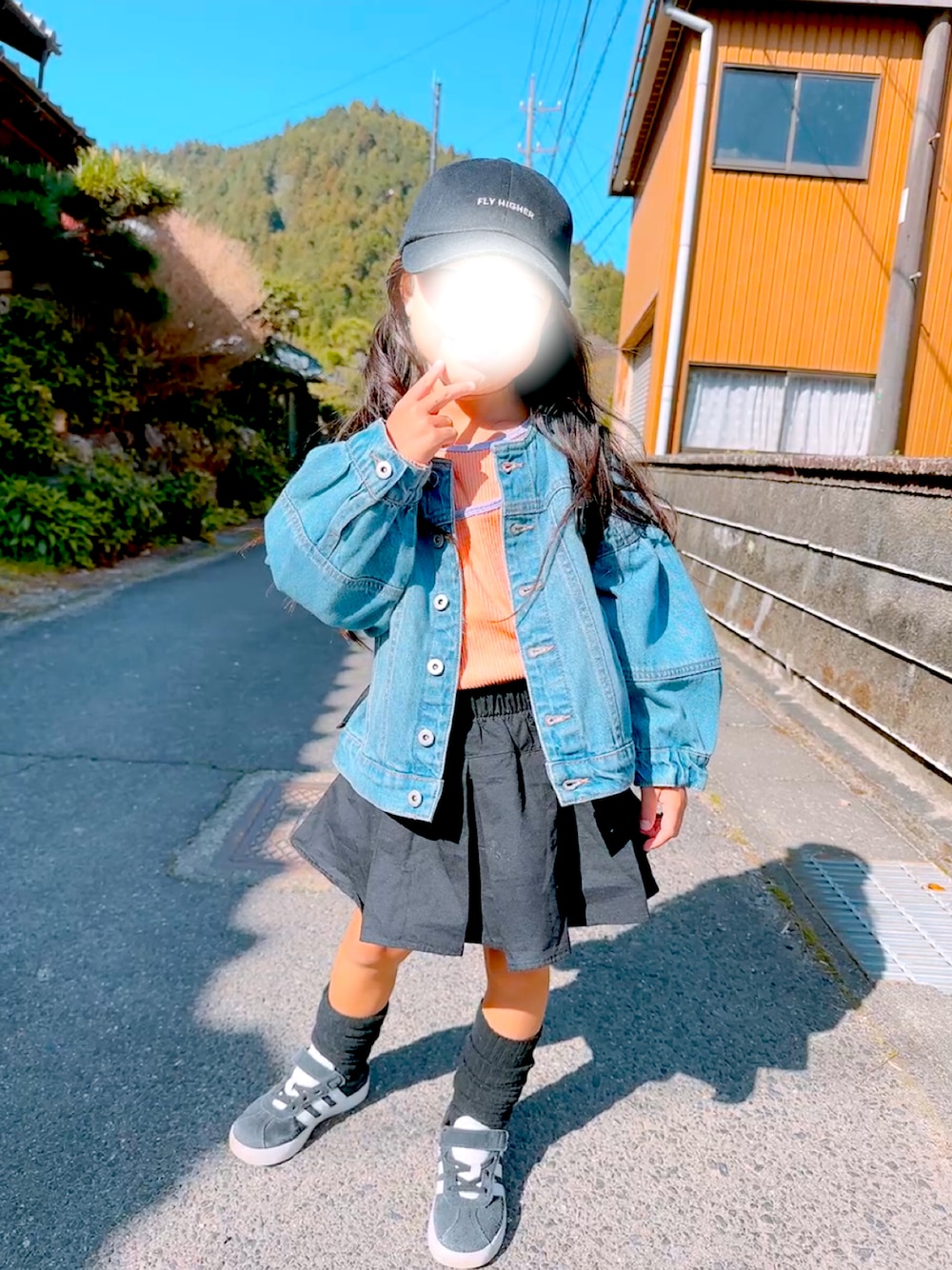 ⌣̈⃝ ame ⌣̈⃝ のデニムジャケット「キッズ 親子お揃いデニムボリュームスリーブジャケット」を使ったコーディネート