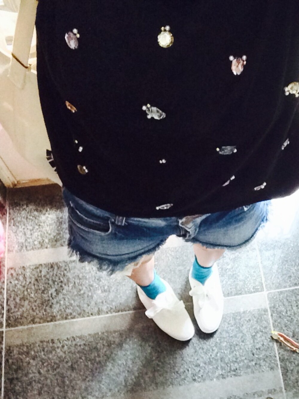 アメアパのトート♡♡ 白のスニーカーに緑の靴下 今日も眠いけどがんばろう〜