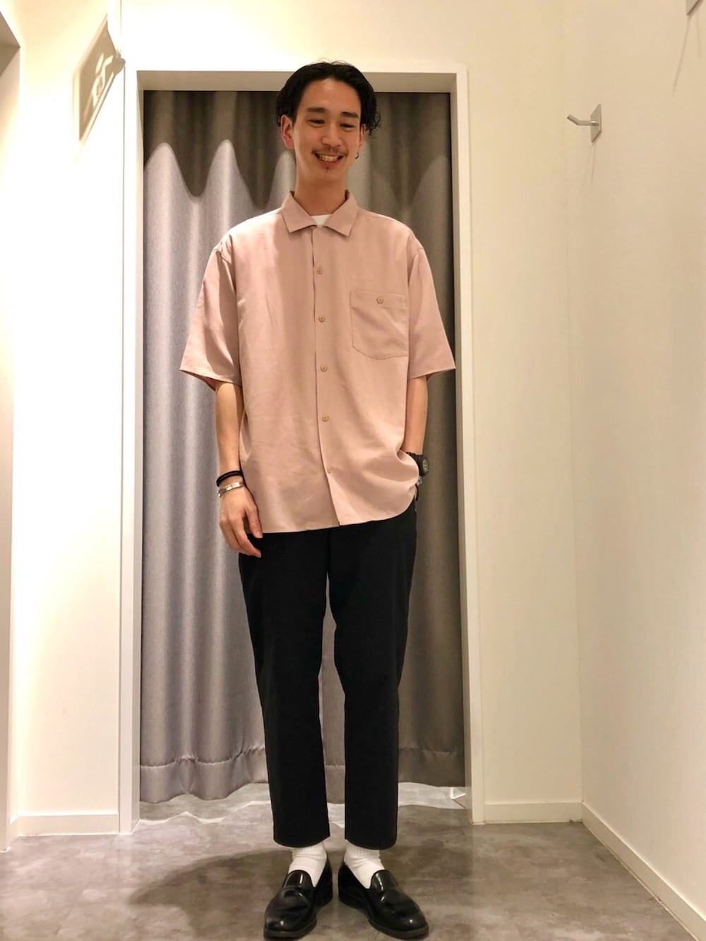 こんにちは。 金沢店の澤田です。 春から夏にかけて色気付きたくなりますよね。ピンクのシャツを着ればお気軽に色気付けます。 オープンカラーシャツですがチンストラップがついてるのでレギュラーカラーシャツとしても着れますよ。 夏に向けて少しずつ体を絞ろうと思います。
