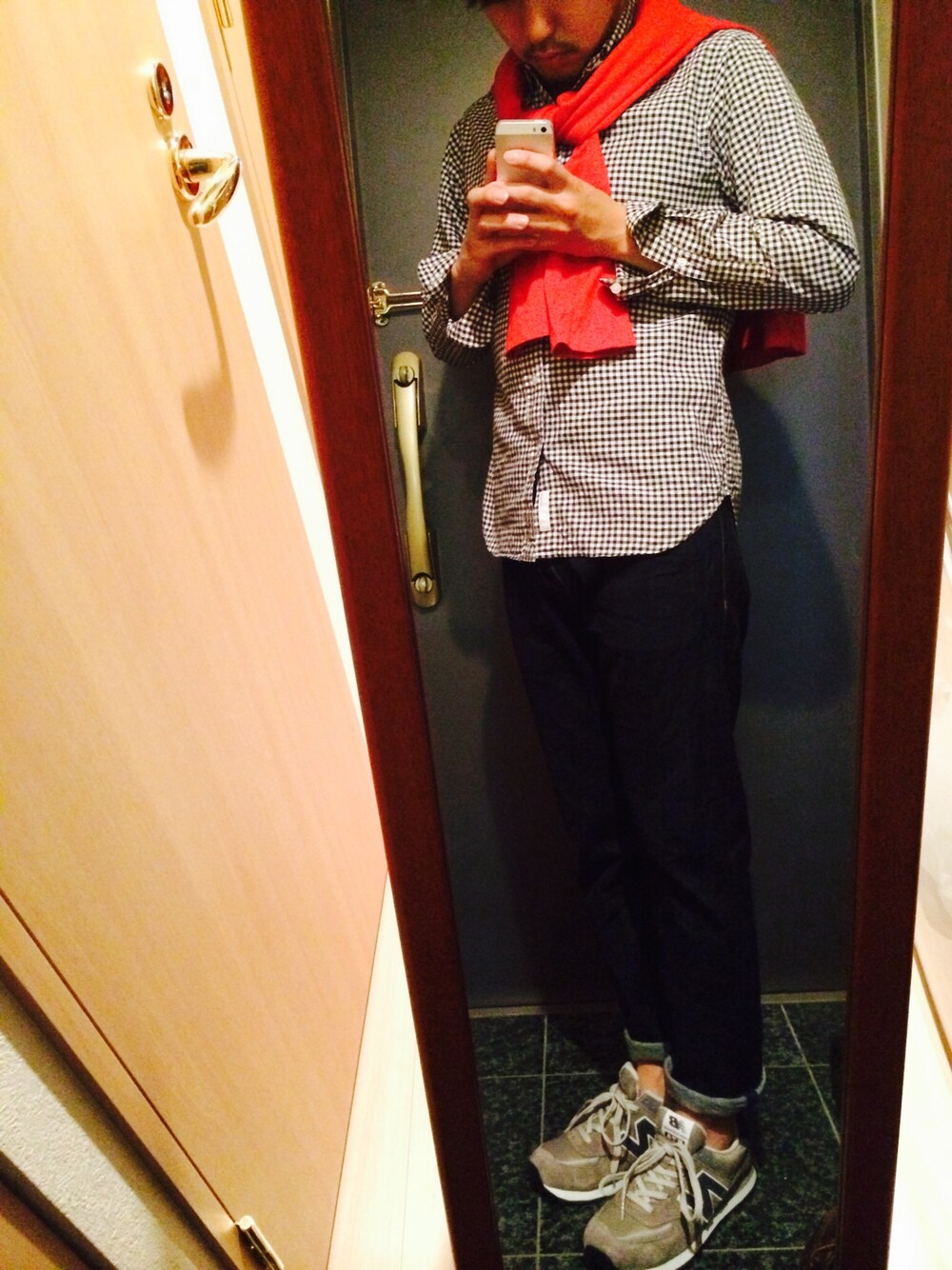 my first day putting on New Balance shirt/JOURNAL STANDARD pants/UNITED ALLOWS cardigan/UNITED ALLOWS shoes/New Balance